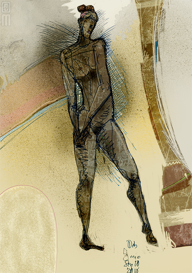 Deb, 5 minute gesture, September 20, remixed via iPad/Procreate